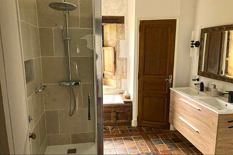 • Chambre du côté de la bibliothèque de l’étage :1 lit de 160 cm avec salle de bain