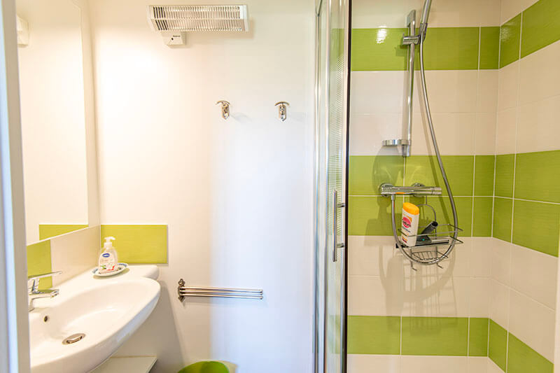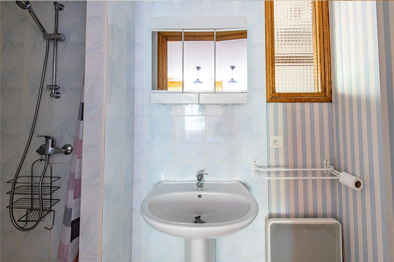 One bedroom with two single beds (80 cm) that can be joined together, and an adjoining shower room with WC.