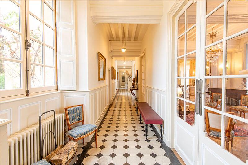The ground floor of Château de Collanges features spacious living areas, all connected by a large central gallery.