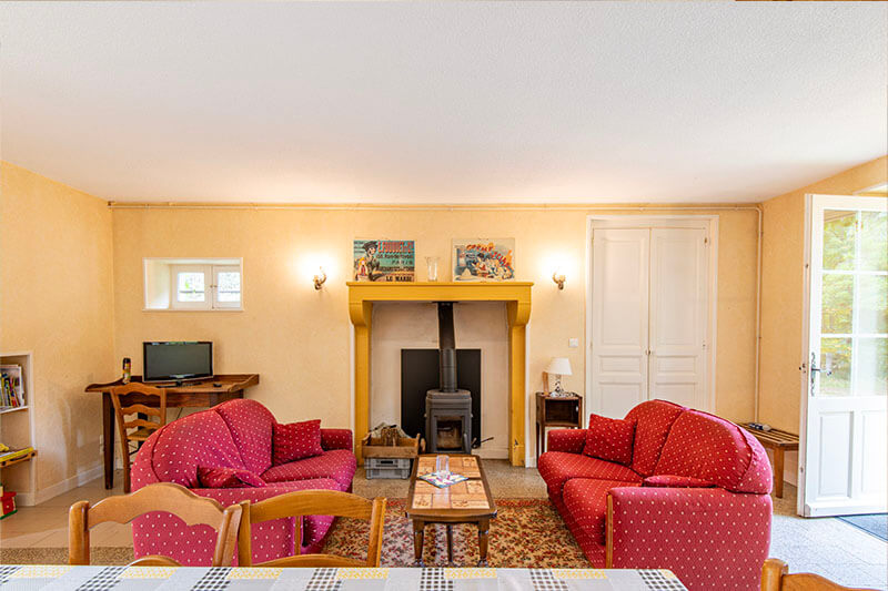 This elegant and intimate space welcomes your guests in a refined atmosphere. It is equipped with a grand piano and a wood-burning stove — ideal for relaxing, playing music, or enjoying a cozy evening facing the surrounding countryside.