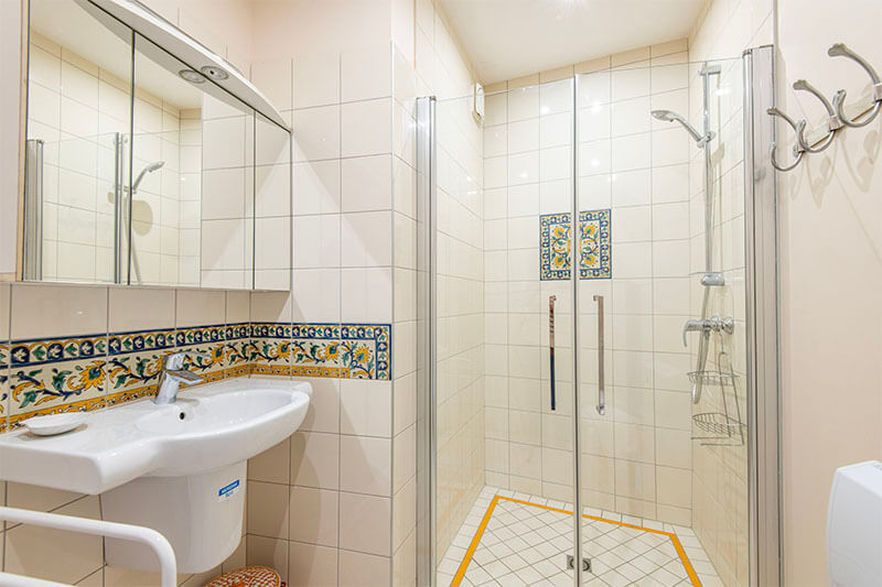 • Gold Room: 1 single bed and 2 twin beds (90 cm) that can be arranged as a king-size bed. Shower room