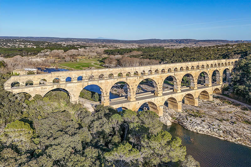 Just two kilometers from the château, Uzès enchants visitors with its exceptional heritage and authentic southern charm. Listed as a “Town of Art and History,” it reveals architectural treasures such as the arcaded Place aux Herbes, Saint-Theodorit Cathedral, the iconic Fenestrelle Tower, and its beautifully preserved medieval streets. A short drive away, the Pont du Gard, a masterpiece of Roman engineering and UNESCO World Heritage site, is an unmissable visit.